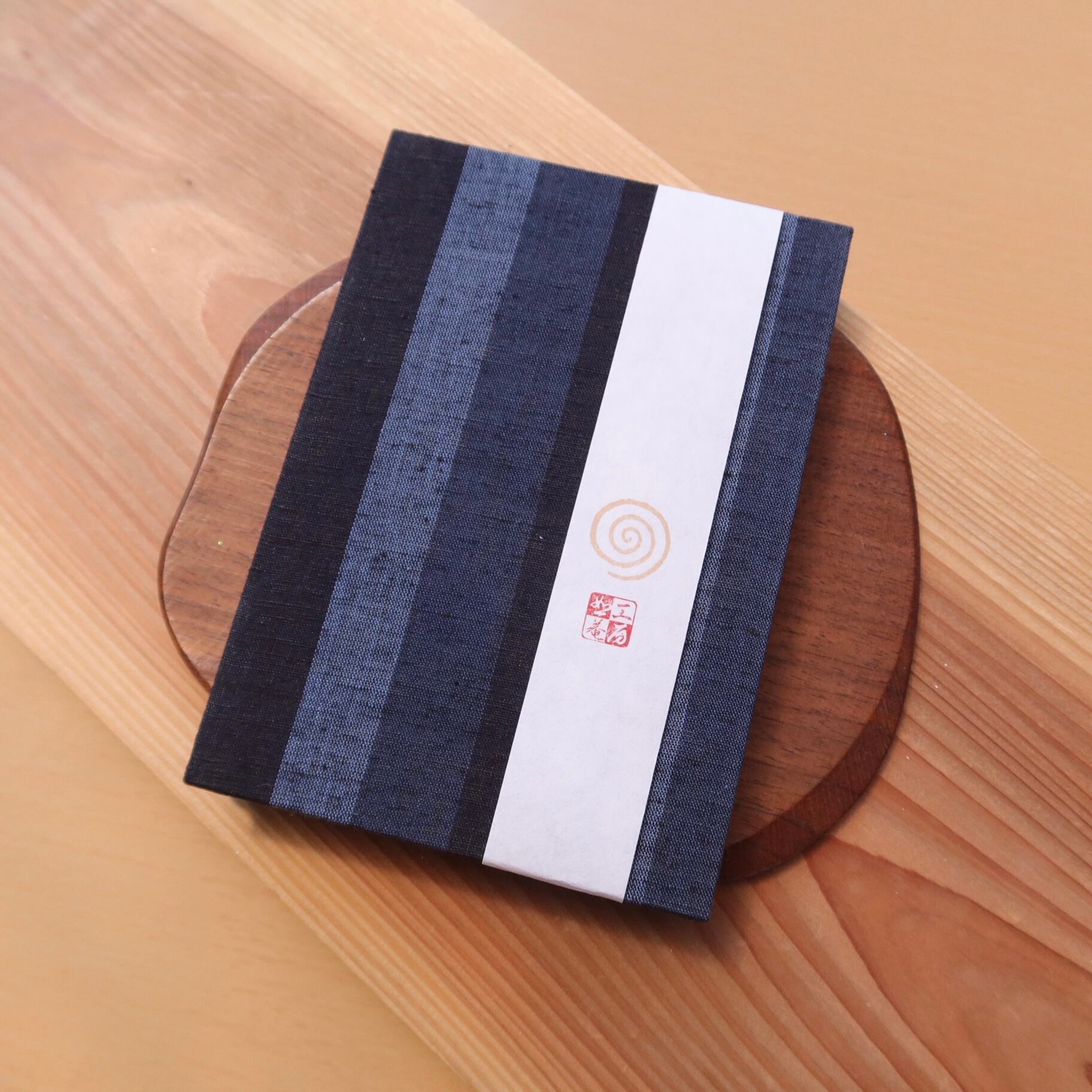 遠州綿紬の御朱印帳 藍色 太ストライプ